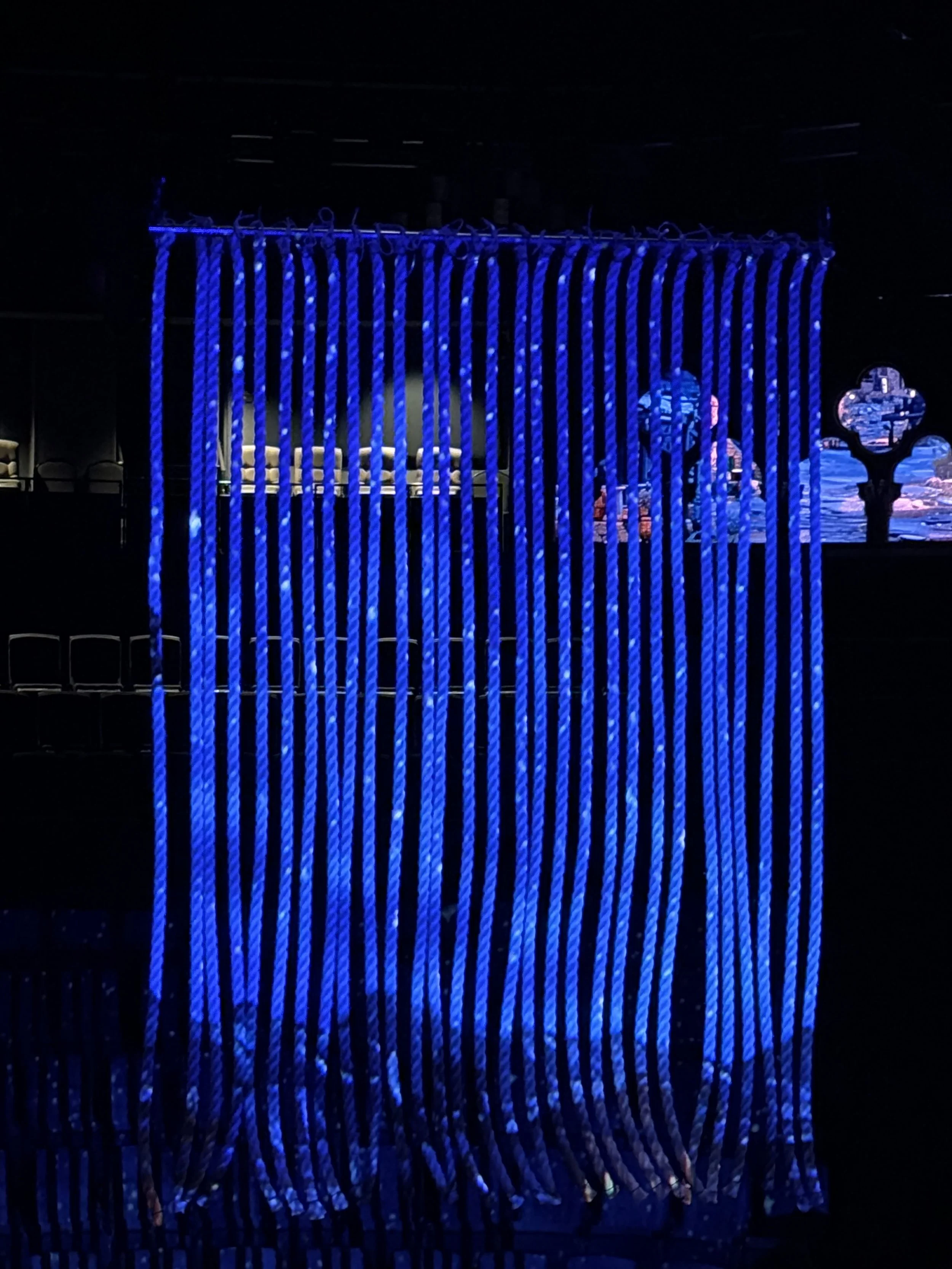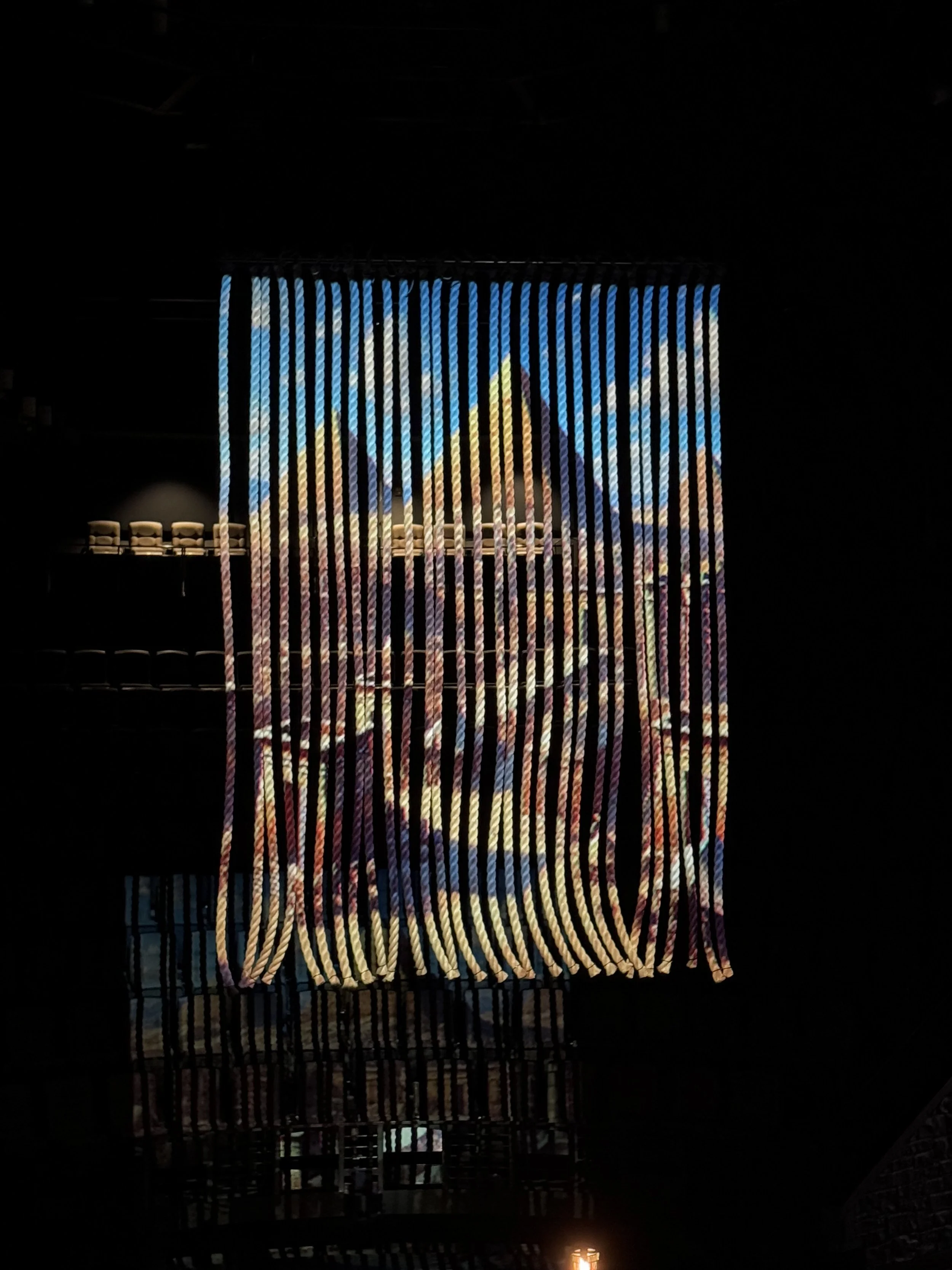 Some moments—like the burning bush or the plagues—used the rope to obscure, revealing images in slivers. Others used it as a wash, casting sunsets, sandstorms, and palatial murals around the audience in all directions.