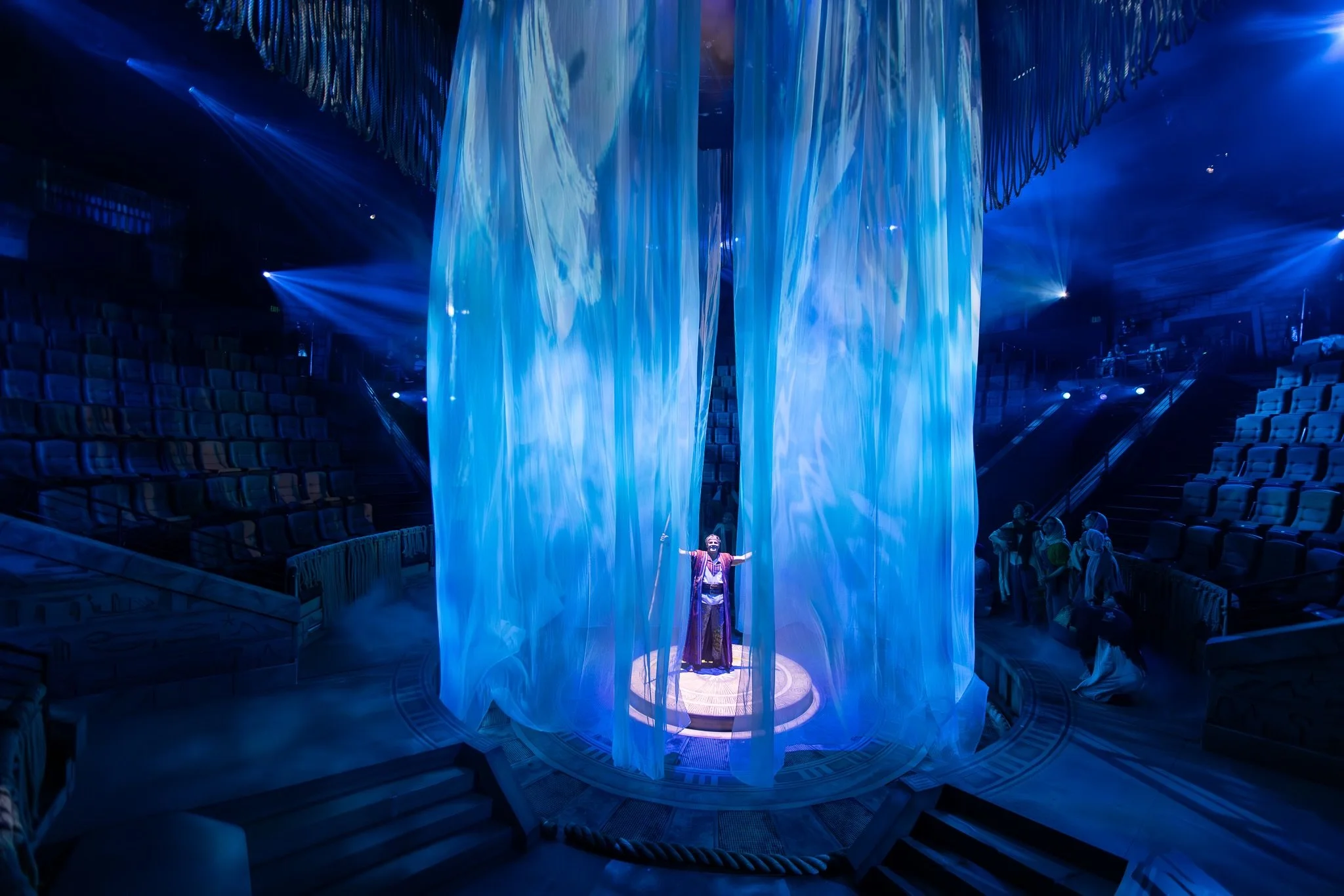 At Hale Centre Theatre, spectacle isn’t optional—it’s the standard. Our venue is in-the-round, equipped with a fully automated Tate stage system, dual gantries for massive scenic drops, and a lighting rig with over 120 moving lights. Everything moves. Everything flies. And the audience sees it all from every angle.